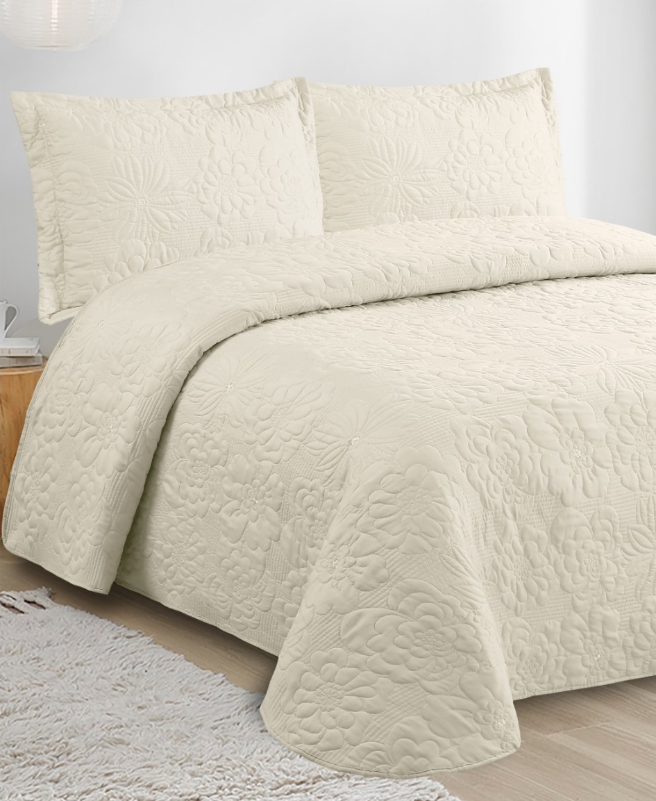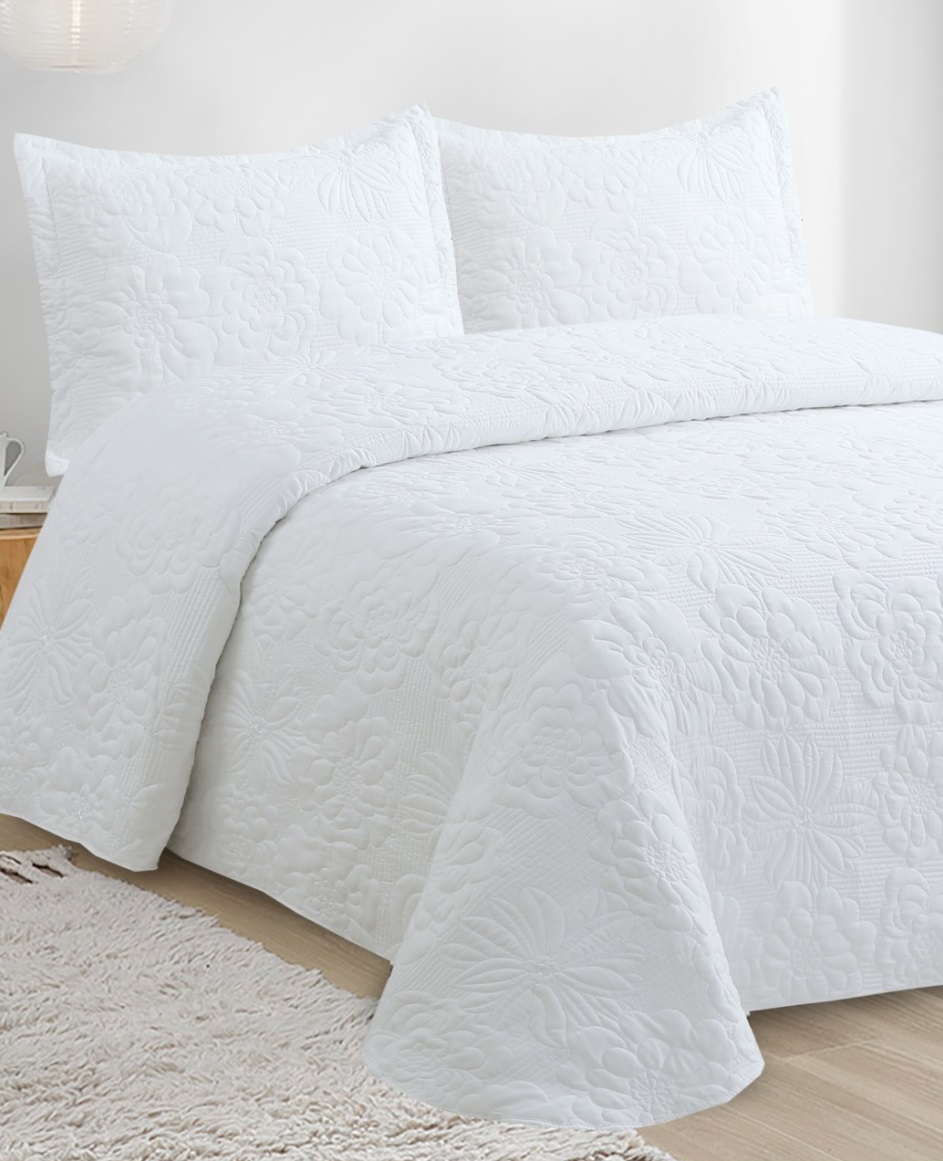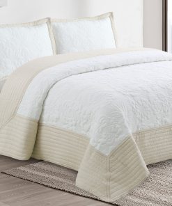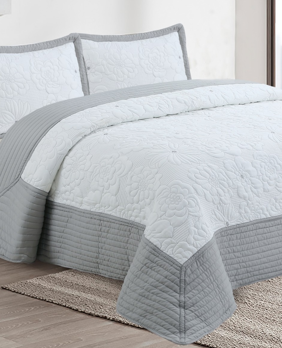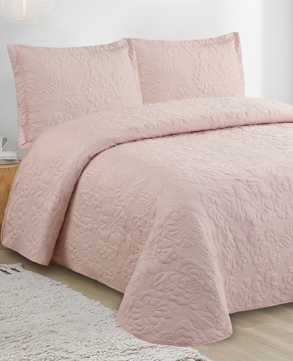 Transforme o ambiente do seu quarto com esta colcha elegante e sofisticada, perfeita para quem procura unir conforto, delicadeza e estilo. O seu padrão floral em relevo cria um efeito visual suave e refinado, adicionando textura e charme à decoração. Cada detalhe do desenho destaca-se pela delicadeza das flores trabalhadas no tecido, proporcionando um aspeto moderno e acolhedor.