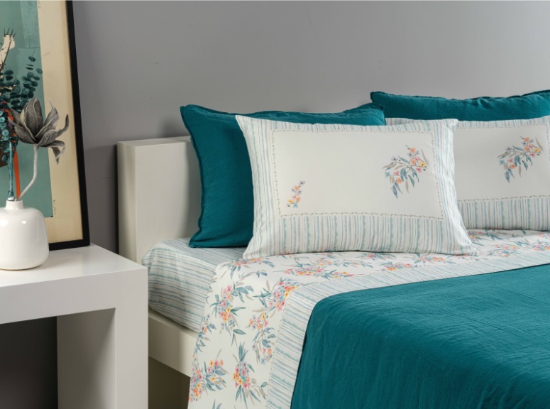 Cada detalhe do jogo de lençóis Terceira é uma lembrança da serenidade das águas cristalinas, onde a tranquilidade se mistura com a exuberância da natureza.